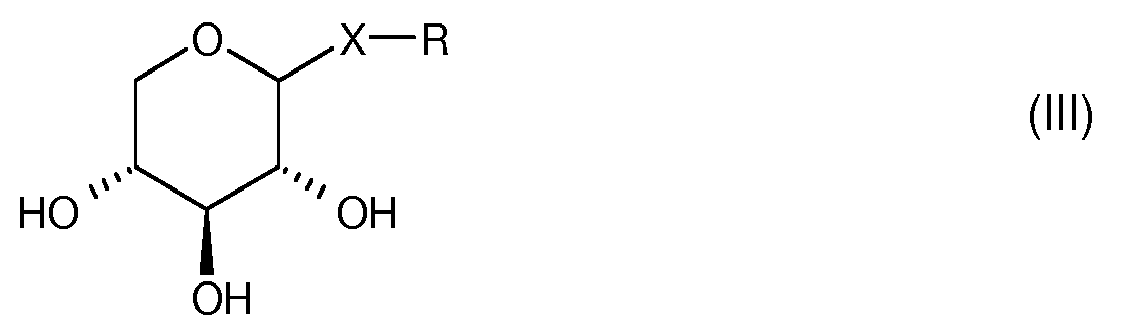 - a family of glycosides used according to the invention is comprised of xyloses substituted by a -X-R, X and R group being such as defined hereinabove. These compounds have the following formula (III): R and X being such as defined hereinabove.