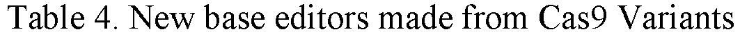 - the invention provides a method for editing a nucleic acid comprising contacting a nucleic acid molecule with the fusion protein of the first aspect of the invention and a guide RNA, wherein the guide RNA comprises a sequence of at least 10 contiguous nucleotides that is complementary to a target sequence in the genome of an organism and comprises a target base pair, wherein the contacting is performed in vitro, optionally wherein