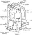 - the pump and valve each described in more detail below, are supported on the frame 20 such that operational forces are isolated from the surrounding housing. Disengagement of the pump and valve is effected by pivoting in a direction opposite to arrow R, prior to removal of a used processing kit 100.