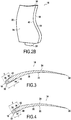 - the intrados and extrados fins extend in height and in length on these sections of, respectively, the intrados and the extrados of the blade, and serve mainly to ensure the positioning and the fixation of the shield on the leading edge but also to distribute the force of an impact and dissipate its energy over a larger area of the dawn body.