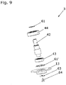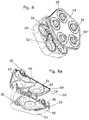 - Table 1a Pressure and speed values of a 4-chamber system with water 1st example 2nd example 3rd example terminal assembly 180 degrees: Active inlet to active outlet on side housing wall in 180 degrees position 90 degrees: Active inlet to active outlet on the side of the housing in 90 degrees position Front: Active inlet and active outlet at bottom Static pressure in Pascal, measured at the inlet side housing wall 809.302 814.047 (-237,403) (Connection of side housing wall not used) Speed in mm / s, measured at the inlet side housing wall 2,472.94 2,472.93 (23,3715) (Connection side housing wall not used) Static pressure in Pascal, measured at the inlet bottom / front (704,574) (front connection not used) (714,092) (Front connection not used) 977.654 Speed in mm / s, measured at the inlet bottom / front (61,9302) (Front connection not used) (55,3904) (front connection not used) 2,472.77 Static pressure in Pascal, measured at the