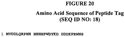- a peptide tag that has an amino acid sequence that is at least 70% identical to SEQ ID NO: 13 or SEQ ID NO: 14.