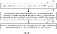 - At least one corresponding sub-frame delay is determined on the basis of a serial number of a DL sub-frame containing the UL grant information or the retransmission indication information, and at least one UL resource is determined on the basis of the at least one sub-frame delay, the UL resource being at least one of a UL sub-frame or an UpPTS in a special sub-frame.