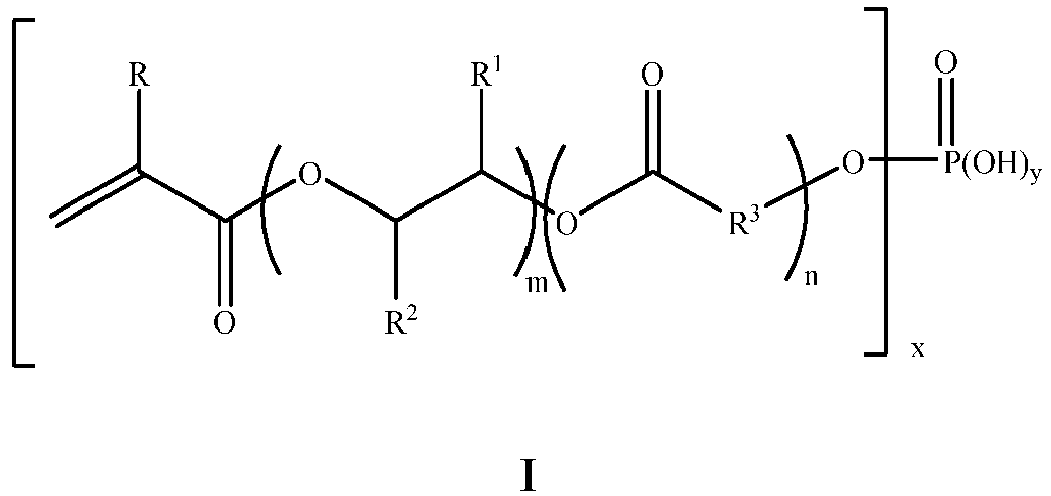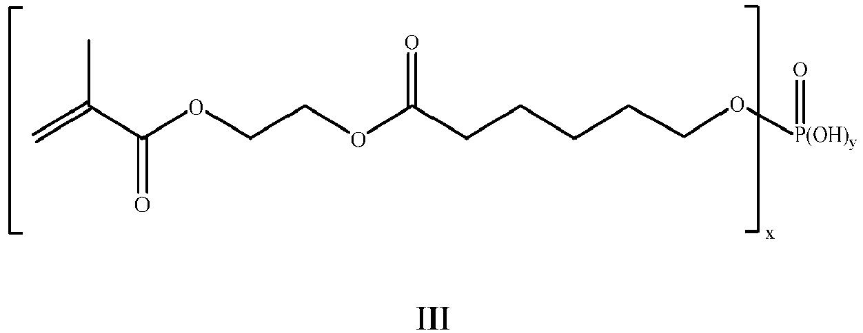 - Sipomer PAM-100, Sipomer PAM-200 and Sipomer PAM-600 phosphate esters are examples of commercially available compounds within the scope of the compound of Formula II.