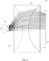 - one or more of the Fresnel surfaces may be defined by a first Fresnel pattern having a first associated focal length for relatively small fields of view (FOV) angles (e.g ., 0-50 degrees) and defined by a second Fresnel pattern having a second associated focal length for relatively large FOV angles (e.g ., 50-110 degrees).