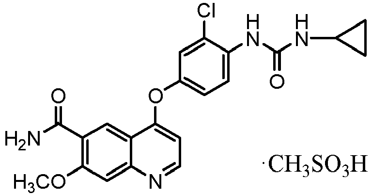 - phenyl chloroformate is reacted with the obtained 4-(4-amino-3-chlorophenoxy)-7-methoxy-quinoline-6-carboxamide and the resulting phenyl N- ⁇ 4-(6-carbamoyl-7-methoxy-4-quinolyl)oxy-2-chlorophenyl ⁇ carbamate is isolated (step B), and then cyclopropylamine is further reacted with the carbamate (step C) to obtain the target compound, 4-[3-chloro-4-(cyclopropylaminocarbonyl)aminophenoxy]-7-methoxy-6-quinoline-carboxamide (hereunder referred to as "compound