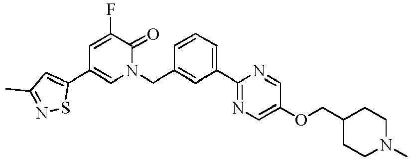 - VSDKJHPKTPTTNQ-UHFFFAOYSA-N CC(C1F)C(c2nccc(C#N)c2)=CN(Cc2cc(-c(nc3)ncc3OCC3CCN(C)CC3)ccc2)C1=O Chemical compound CC(C1F)C(c2nccc(C#N)c2)=CN(Cc2cc(-c(nc3)ncc3OCC3CCN(C)CC3)ccc2)C1=O VSDKJHPKTPTTNQ-UHFFFAOYSA-N 0.000 description 1