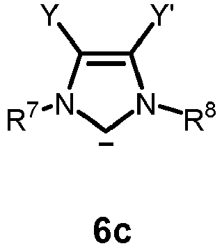 - the carbene is an unsaturated carbene of formula 6a or 6b , preferably 6a .