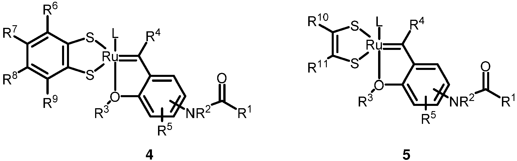 - US 8 288 576 discloses a ruthenium catalyst having the following structure 2b: wherein: