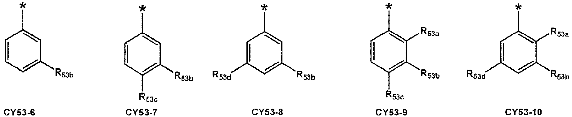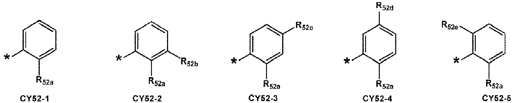 - ring CY 1 to ring CY 4 , ring CY 51 to ring CY 53 , and ring CY 71 and ring CY 72 may each independently be selected from a C 5 -C 20 carbocyclic group and a C 1 -C 20 heterocyclic group.