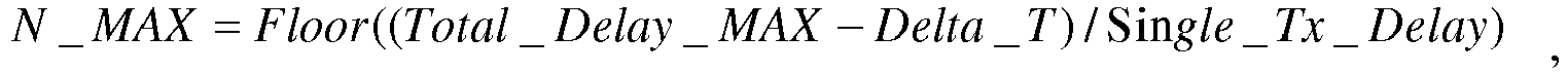 - N _ MAX Floor Total _ Delay _ MAX ⁇ Delta _ T / Sin gle _ Tx _ Delay , where