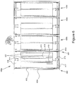 - An additional embodiment of the present subject matter may provide a delivery vehicle comprising a plurality of bays, at least one of the plural bays including two rectangular frames, each frame having two horizontal members and two vertical members and each frame opposing and facing the other.