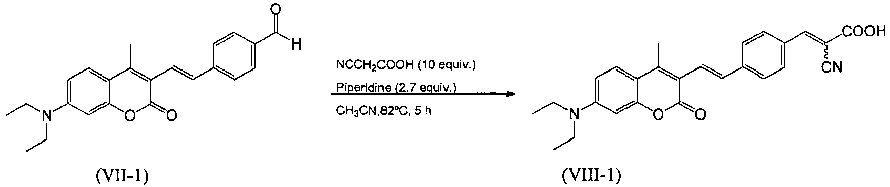 - Step 2 Preparation of 2-cyano-3-(4-((E)-2-(7-(diethylamino)-4-methylcoumarin-3-yl)vinyl)-phenyl)acrylic acid (VIII-1)