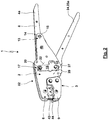 - the partially closed position for which the dies held on the pliers jaws are just resting on the outer surface of the workpiece, the bolt is automatically transferred to the second position due to the alignment of the elongated hole, which means that the drive connection is switched to a smaller translation, with which then larger forces can be brought about on the pliers jaws.