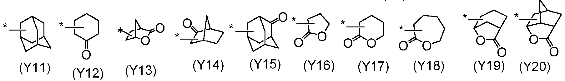 - Examples of the polycyclic alicyclic hydrocarbon group include a decahydronaphthyl group, an adamantyl group, a norbornyl group, an adamantylcyclohexyl group and the following groups (* represents a bond).
