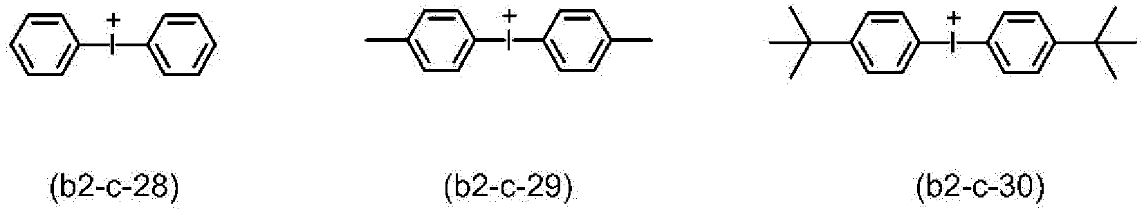 - the resin may further comprise a structural unit which is decomposed upon exposure to radiation to gene rate an acid, said structural unit being represented by formul a (II-2-4): wherein, in formula (II-2-A),