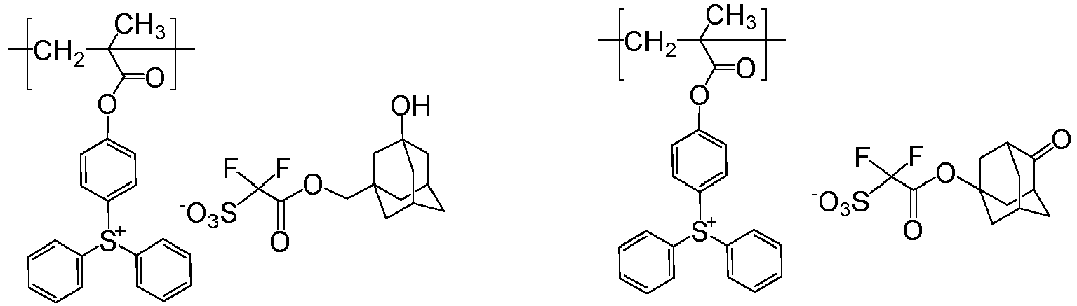 - Patent Document 1 mentions a compound of the following structural formula, a resin including a structural unit having an acid-labile group, and a resist composition comprising an acid generator.