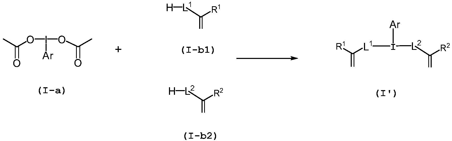 - the compound (I') can be obtained by reacting a compound represented by formula (I-a), a compound represented by formula (I-b1) and a compound represented by formula (I-b2) in a solvent: wherein R 1 , R 2 , L 1 , L 2 and Ar are the same as defined above.