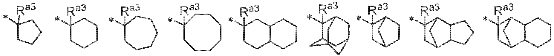 - the alicyclic hydrocarbon group of R a1 to R a3 may be any one of monocyclic, polycyclic and spiro ring, or may be either saturated or unsaturated.