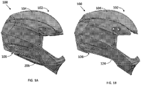- FIGs. 1A-2B show different views of a helmet 100 comprising a helmet body 102.