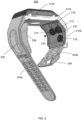- the second portion of the wrist strap includes a second projection that assists to fixate the device at a fixated area corresponding to a distal end of the wearer's ulna bone.