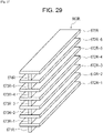 - a predetermined signal process including digitalization (AD conversion) of the analog pixel signal read from each unit pixel 32 in the right half region of the pixel array unit 31, and stores the pixel data, which is subjected to the signal process. Further, the signal processing circuit 41R reads, for example, the stored pixel data in a predetermined order, and outputs the pixel data to the outside of the chip. Thus, the pixel data obtained from the unit pixels 32 in the right