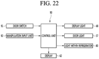 - the refrigerator has a problem in that when the door is not opened, internal food cannot be identified. That is, the door should be opened to identify whether desired food is received in a space in the refrigerator or in a separate storage space provided in the door. Further, when a user does not exactly know where the food is stored, an opening time of the door may increase or the number of times the door is opened may increase. At this time, unnecessary outflow of cold air may occur.