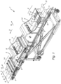 - the device according to the invention may be provided with two suppliers for a foil, arranged upstream of the first hopper, so that each stream of compost and casing soil is arranged on a foil. Both foils may in that case be transferred to separate beds in the shelving with the compost and casing soil on top of it.
