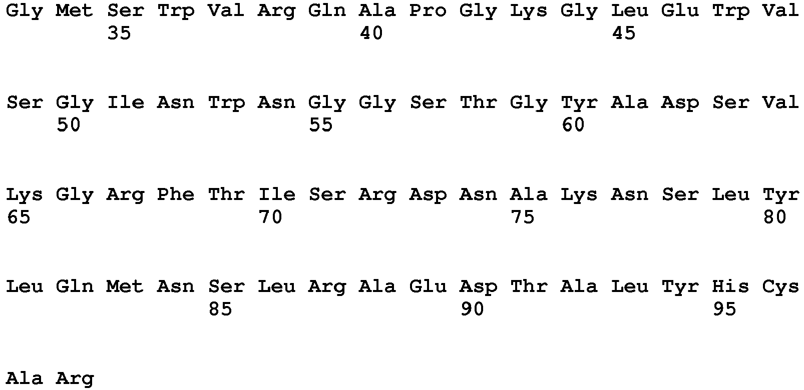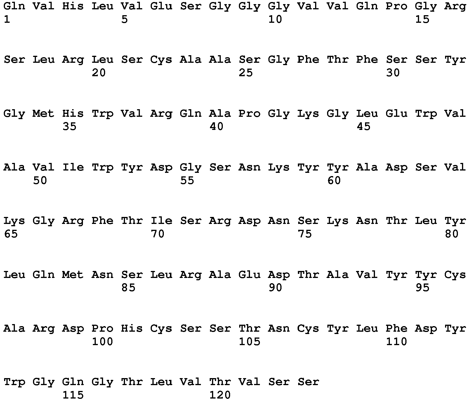 - the reference antibody comprises a heavy chain variable region comprising the amino acid sequence of SEQ ID NO: 40 and a light chain variable region comprising the amino acid sequence of SEQ ID NO: 46. In another preferred embodiment, the reference antibody comprises a heavy chain variable region comprising the amino acid sequence of SEQ ID NO: 41 and a light chain variable region comprising the amino acid sequence of SEQ ID NO: 47. In another preferred embodiment, the reference antibody comprises a heavy chain variable region comprising the amino acid sequence of SEQ ID NO: 42 and a light chain variable region comprising the amino acid sequence of SEQ ID NO: 48.