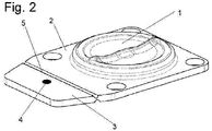 - the membrane can also have a special shape, which provides additional advantages through a chamber. This configuration is not shown in the figure. Part of the tab 3 protrudes separately from the housing of the valve or the pump.