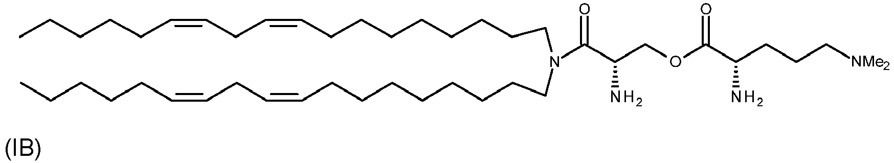 - the composition may comprise a cationic lipid having the structure a steroid having the structure a phosphatidylethanolamine phospholipid having the structure And a PEGylated lipid having the structure