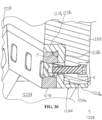 - the first jaw includes a first guide surface; and the second jaw includes a guide blade that defines a second guide surface that faces toward the second material-processing surface feature such that a space is formed between the second material-processing surface feature and the second guide surface, wherein sufficient pivotal movement of the at least one of the jaws would cause at least a portion of the first jaw to move into the space, and a lateral actuator that is configured to selectively move the second guide blade relative to the second material-processing surface feature so as change a lateral width of the space.