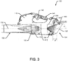 - the handle 140 may include a trigger 146 that may be operated by a finger of the operator while the operator holds the handle 140. Actuation of the trigger 146 may cause power from the battery or other electric power source to be selectively applied to the motor 120 to turn the motor 120 based on control provided by the control unit.