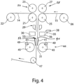 - the joint formed by the end of the first composite film and the beginning of the second composite film are fed together to a connecting station.