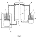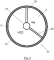 - the transfer means has a first transfer duct connecting the water reservoir to the reaction chamber, which transfers the water from said water reservoir to the reaction chamber, and a second transfer duct connecting the alkali reservoir to the reaction chamber, which transfers the alkali element from the alkali reservoir to the reaction chamber.