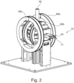 - the device 10 comprises a magnetic field generator which is Fig.1 and 2 consists of a total of ten coils arranged in pairs. In the drawings only three coil pairs 60a, 60b and 60c are visible. Two further coil pairs are inside the Magnetic field generator arranged in the same orientation as the coil pair 60c. Each coil pair is preferably designed in a type of "Helmholtz" arrangement with a largely homogeneous magnetic field near its coil axis.