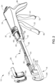 - handle assembly (12) has a handle housing (34), a pair of handle frame plates (35, 36) within handle housing (34) extending along shaft assembly (14), saddle shaped slide (18), closure trigger (20), and firing trigger (22) as briefly discussed above.
