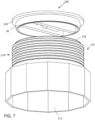 - a ring 120 that is concentric with the cover 110, extends downwardly from the bottom surface 114 of the cover 110 to a free end 122 of the ring 120.