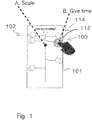- the time pressed is calculated by the means 106, 108 in seconds, minutes, hours and days. Even broken seconds can be calculated in 1/1000 seconds, 1/100 seconds and 1/10 seconds.