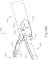 - Handle assembly (20) comprises a body (22) including a pistol grip (24) and a pair of buttons (26). Handle assembly (20) also includes a trigger (28) that is pivotable toward and away from pistol grip (24). It should be understood, however, that various other suitable configurations may be used, including but not limited to a scissor grip configuration. In the present example, a resilient member biases trigger (28) away from pistol grip (24). Trigger (28) is pivotable toward pistol grip (24) to drive inner tube (34) proximally relative to outer sheath (32). When trigger (28) is thereafter released or driven away from pistol grip (24), inner tube (34) is driven distally relative to outer sheath (32).