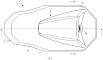 - the outer layer and the first base, or support, layer of the back protector are firmly joined with each other and the coupling seat comprises a recess surrounded, at least partially, by at least one slot, pocket or slit, made between said two layers. That is to say, that said coupling seat comprises a recess surrounded, at least partially, by a slot, pocket or slit. Consequently, the coupling and decoupling of the back protector and the tank element is facilitated.