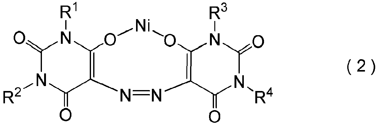 - the pigment (A) is preferably a nickel complex pigment having a structure represented by the following general formula (2) or a pigment of a tautomer thereof.