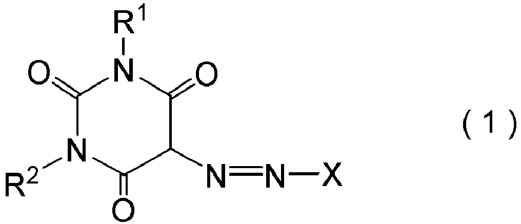 - X is a monovalent aromatic hydrocarbon group having 1 to 20 carbon atoms or a group containing a 5- or 6-membered nitrogen-containing heterocyclic ring: and R 1 and R 2 are each independently a hydrogen atom, a monovalent hydrocarbon group having 1 to 5 carbon atoms, or a -SO 3 H group.
