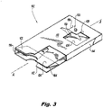 - the card retaining aperture 118 extends longitudinally past the moveable tab edge 136 in a first direction, as indicated by the length d1 in Fig. 5 , but does not extend longitudinally past the root 132 of the tab 126 in a second direction opposite the first direction, as indicated by the length d2 in Fig. 5 .