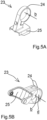 Figuren 5A und 5B zeigen zwei verschiedene Versionen von Montageschellen, wie sie bei der erfindungsgemäßen Vorrichtung zum Einsatz kommen können. Die Schelle gemäßFig. 5A ist in derFig. 2 im am Lenker montierten Zustand wie vorstehend beschrieben dargestellt. Die Montageschelle gemäßFig. 5B ist mit doppelten Schellenbändern versehen, die in einem Abstand voneinander liegen, der der Breite des Schellenbands der Schelle nachFig. 5A entspricht. Somit besteht die Möglichkeit, in dem Freiraum 22 nicht nur eine einzelne Montageschelle anzuordnen, wie dies inFig. 2 gezeigt ist, sondern eine Kombination aus zwei Montageschellen gemäßFig. 5A und Fig. 5B , wobei die in Zwillingsanordnung vorgesehenen Schellenbänder der Schellen gemäßFig. 5B nicht nur die Halterung für das jeweilige Fahrzeugzusatzteil tragen, sondern zusätzlich auch die Funktion von Distanzstücken mit einer Dicke d übernehmen, die das einzelne, schmale Schellenband des Halters gemäßFig. 5A zwischen sich zentrieren. Die Anordnung mit zwei Montageschellen gestattet das Anbringen von zwei verschiedenen Fahrzeugzubehörelementen genau zentral in der Mitte des Lenkers, wobei dann vorzugsweise eines der Zubehörelemente oberhalb des Vorbaus 13 und das andere unterhalb des Vorbaus angeordnet ist. -