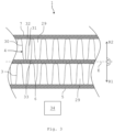 - the fact that the fins and the separating plates are arranged "alternately" means that a separating plate is arranged between two fins and a fin is arranged between two separating plates.