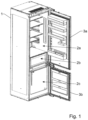 - the refrigerator also comprises a door 3 on the front, a first fan 6a, a second fan 6b, a cooling air duct 7 running along the back of the refrigerator and an evaporator 8, which is arranged in the cooling air duct 7.