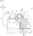 - the engine 3 shown in Figs. 2 and 3 is disposed in a rear portion of the hood 4 and supported on the body frame 2.