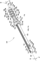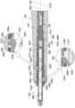 - a first compression spring 180 operatively engages multifunctional retaining element 150 and with elongate damping drive element 160 for driving them forwardly along a longitudinal axis 190 in a direction indicated by an arrow 192.