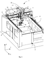 - the conveying unit is connected to one or more drivable motors to move the conveying unit substantially along the axes X and Y and along another axis Z of the trio of axes X, Y, Z.